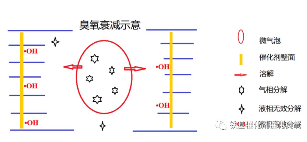 “催化劑填料”這一名詞,在化工行業(yè)有見(jiàn),但不常用。催化劑的功能是加速反應(yīng),屬化學(xué)學(xué)科概念;填料的功能是為傳質(zhì)和反應(yīng)提供場(chǎng)所,屬化工學(xué)科概念。在催化臭氧化過(guò)程中, •OH產(chǎn)生于臭氧在