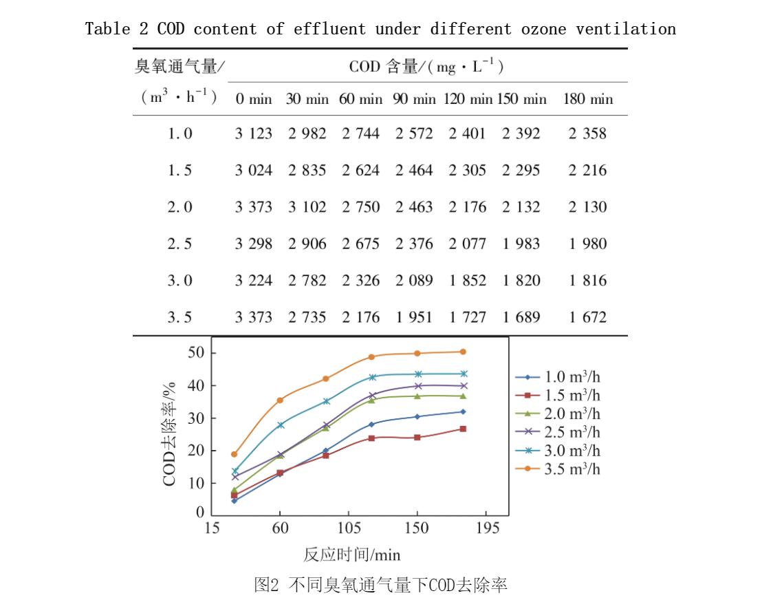 表2 不同臭氧通氣量下出水COD含量